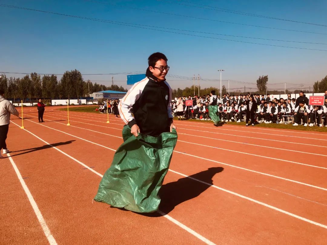 裁判员一声令下,同学们双手提着袋子,连跳带跑地向另一端奔去。起初,各支队伍旗鼓相当,同学们采用了不同的战术,有稳中求进的,也有大步跃进的,大家竭尽所能地冲向目的地。