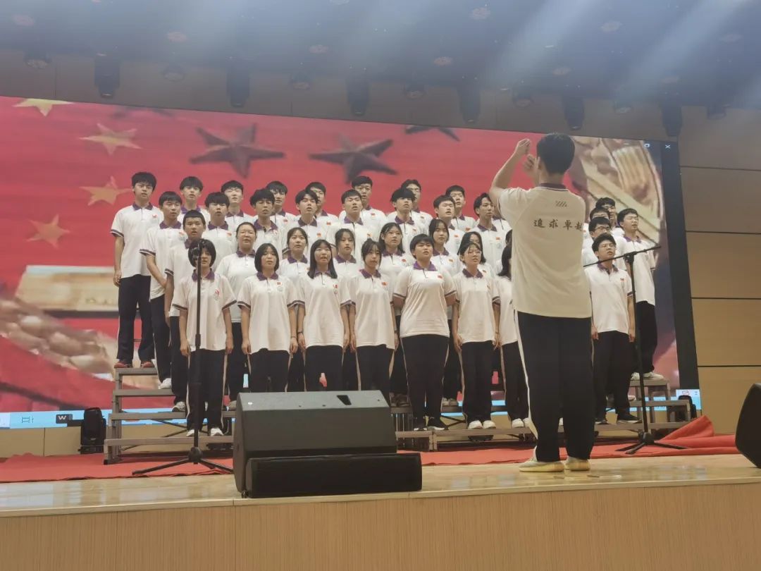 激情嘹亮的歌声,勾出百年难忘的回忆,收放自如的指挥,描绘气势磅礴的激情。红歌如画,展现光辉历程,学子如歌,道出丰功伟绩,是拳拳爱国心、殷殷爱党情,更是街中学子坚持不懈、步履不停的誓言:葆初心,记使命,敢担当。