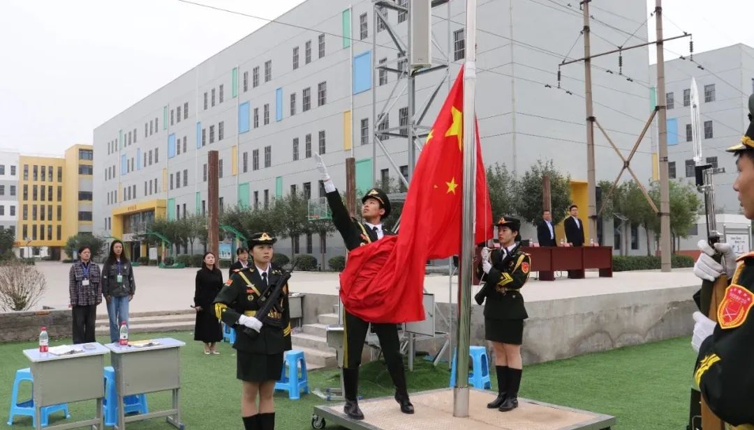 在庄严的国歌声中,跑操比赛拉开序幕,国旗班步伐矫健,护旗前行,全体人员肃穆站立,鲜艳的五星红旗冉冉升起。