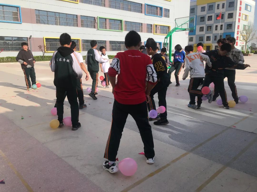 下午第三节课,在老师一声令下,比赛开始了!每个人的眼睛紧紧地盯着气球,恨不得用眼神把气球扎破。随着老师一声令下,一场混战开始了。“啪!啪!”有个组只剩下了两只气球,这被其他组同学看到了,冲上前去,小组成员互相配合一起踩。