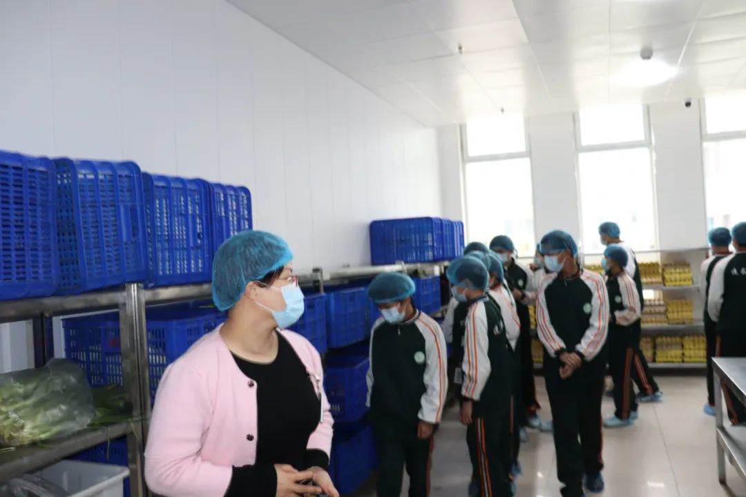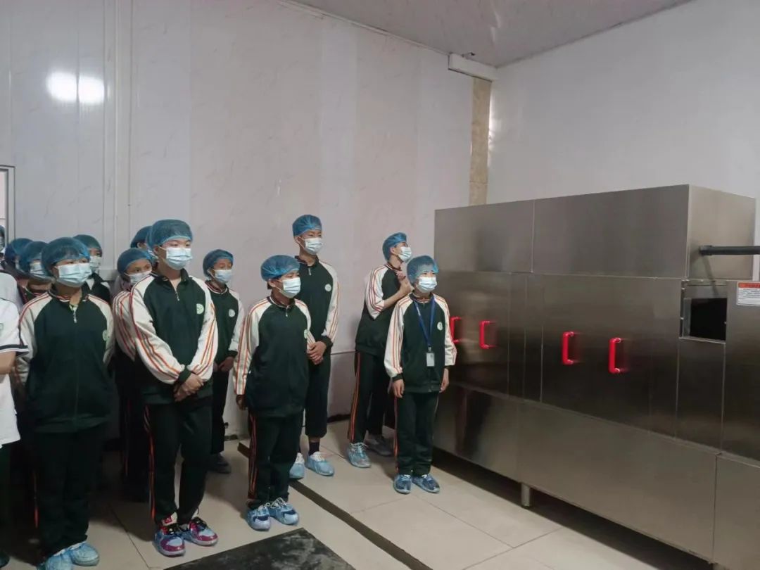 进入食堂,后厨工作人员向同学们分发一次性口罩、帽子、鞋套,按照后厨标准“全副武装”穿戴整齐,食堂工作人员带领学生们参观学校食堂,首先参观了食物的检验流程;接着,来到学校食堂,实地查看了厨房的环境卫生,食品的来源、存储方法、餐具消毒,食物的蒸煮流程等,全方位了解了学校膳食制作的过程。让学生感受到街中对学生身体健康的关心和爱护,以及对食品安全的重视。