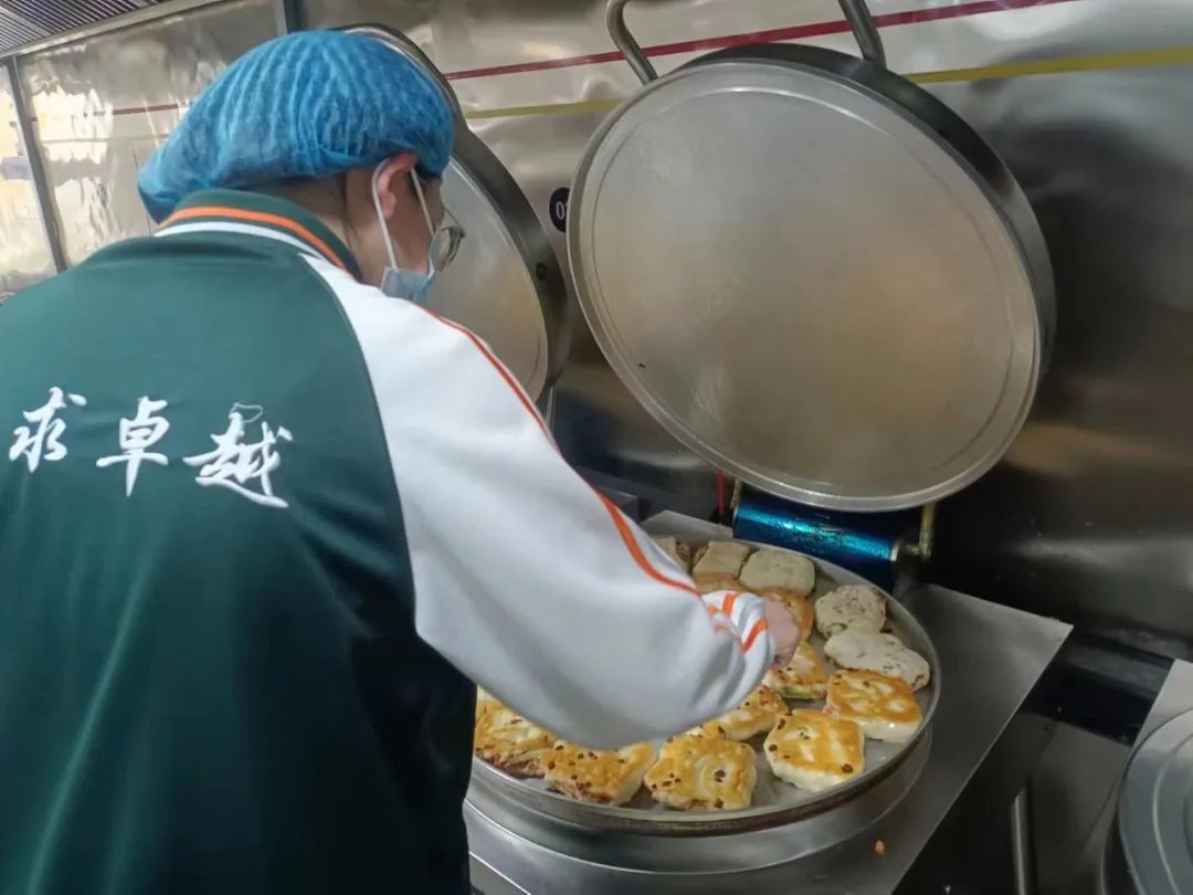 之后,学生们在食堂厨师们的指导下,学习制作了烙饼等的制作过程,还亲自体验卖饭的环节。让学生对做饭有了新的体验和认识。